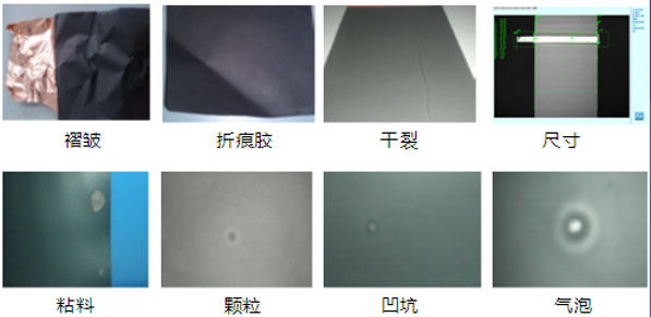 涂布檢測項(xiàng)目:褶皺、折痕膠、干裂、尺寸、粘料、顆粒、凹坑、氣泡