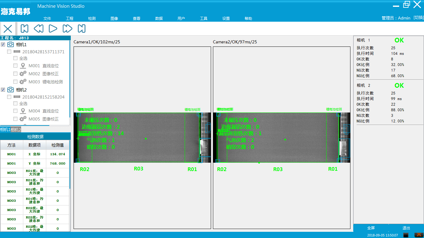 六、極片測量類 測量類方法對提取的元素進(jìn)行幾何關(guān)系測量。包含兩種類型的測量:極片寬度,長度,夾角,上料高度,極耳長度,極耳寬度等各種距離和角度。