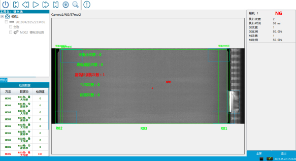 在線式檢測系統(tǒng)一共四個(gè)工位,前端物料正反面(工位1和工位2)檢測兩個(gè),后端兩個(gè)超聲波焊接后各一個(gè)(工位3和工位4)。