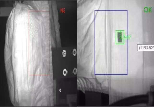 CCD4檢測項(xiàng)目(線掃相機(jī)):檢測鼻條不良(無鼻條、鼻條位置偏移)、耳帶不良(無耳帶、多耳帶、耳帶斷裂)、折疊層數(shù)、折子不良(折子間, 距不符、折子距邊尺寸)、點(diǎn)焊不良(點(diǎn)焊位置不符、點(diǎn), 帶方, 式錯(cuò)誤);