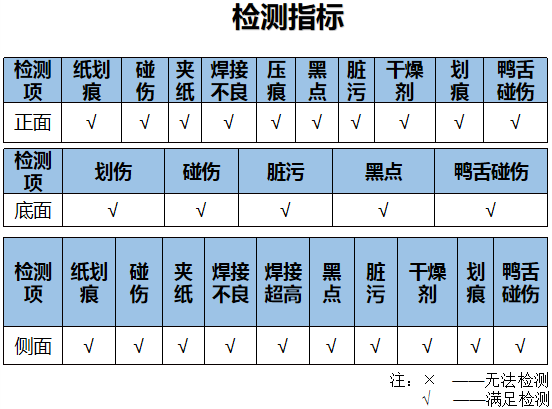 2.速度快、效率高、成本低,機(jī)器視覺檢測數(shù)量能達(dá)到250個(gè)/min,提高了生產(chǎn)效率,節(jié)約了后面的檢測人員的人力成本;