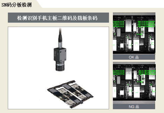 主要功能:檢測識別手機主板上的二維碼信息及載板上的條碼,檢測結(jié)果以字符串形式發(fā)送給服務(wù)器,上位機進行分板處理。