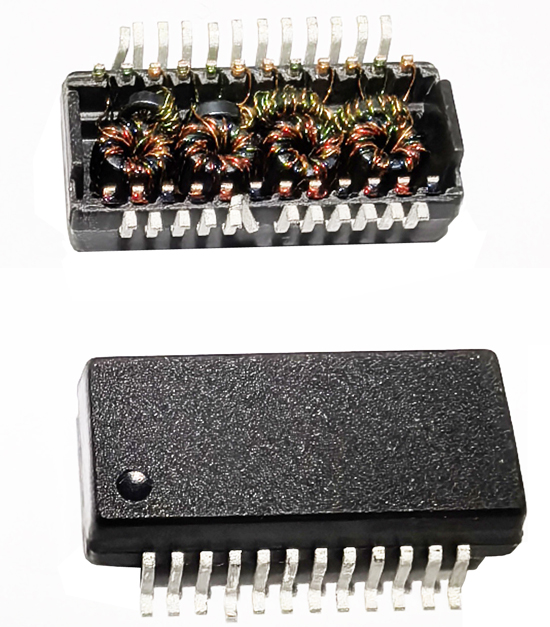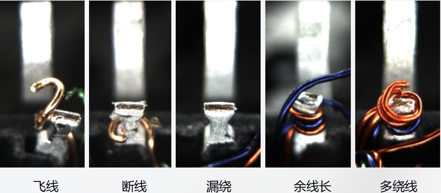 繞線質量AI視覺檢測系統針對網絡變壓器Pin腳繞線的情況進行檢測,主要包含余線長,顏色錯誤,斷線,掉線,漏線等不良情況,檢測結果標準,可量化,排除了繞線檢測結果受檢測人員主觀意愿、情緒、視覺疲勞等人為因素的影響,可信度高。下圖為產品正反兩面圖片。