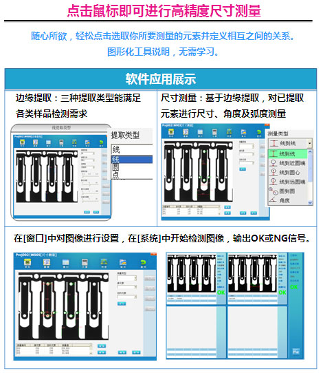 “沖壓件智能檢測儀”是西安?艘装罟怆娍萍加邢薰惊毩⒆灾鏖_發的針對沖壓件的檢測設備。該設備集本公司在機器視覺工業檢測領域多年技術積累,同時結合目前用戶特點及實際需求而推出。產品具有集成度高、操作簡便、設置靈活、穩定可靠等特點。適用于測量沖壓件任意部位邊緣間距、任意圓間距、任意邊緣到圓的圓心距,遠心距,近心距,同時可檢測沖壓件是否有歪斜,缺失,尺寸不良等。